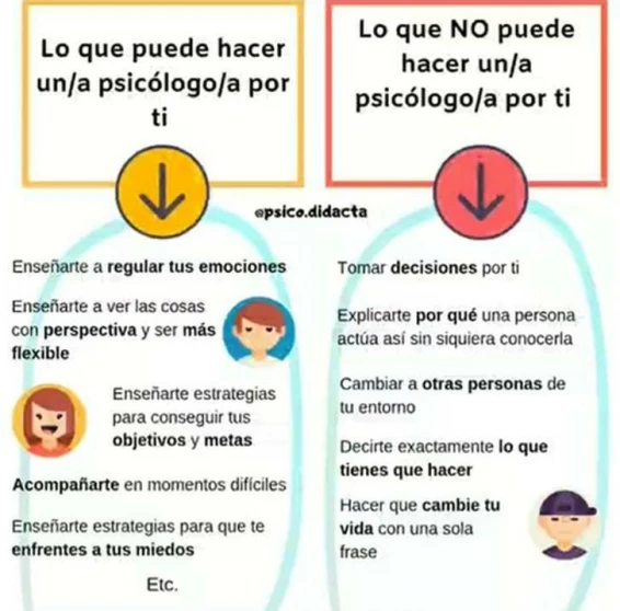 • Los psicólogos te solucionan los problemas. Los tratamientos psicológicos ayudan a la persona a incorporar herramientas y pautas para enfrentar los problemas.