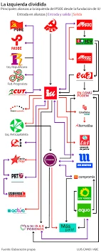 Muchas personas en España son comunistas pero dentro del comunismo siempre ha habido corrientes infinitas, peleas, disputas, egos y traiciones. Del comunista libertario, pasando por el Partido Comunista de los Trabajadores en España, el Partido Comunista de los Pueblos de España, el Partido Comunista Obrero de España... sí, los comunistas son más que los del PSOE y los fascistas pero nunca piensan en sumar.
